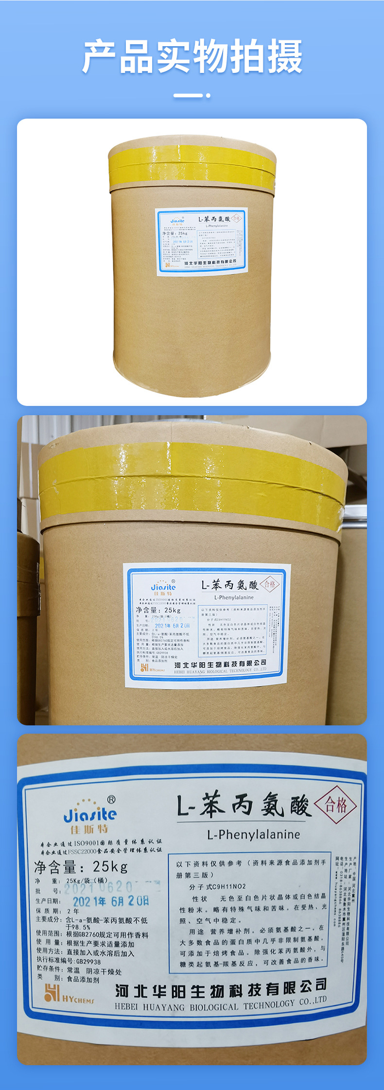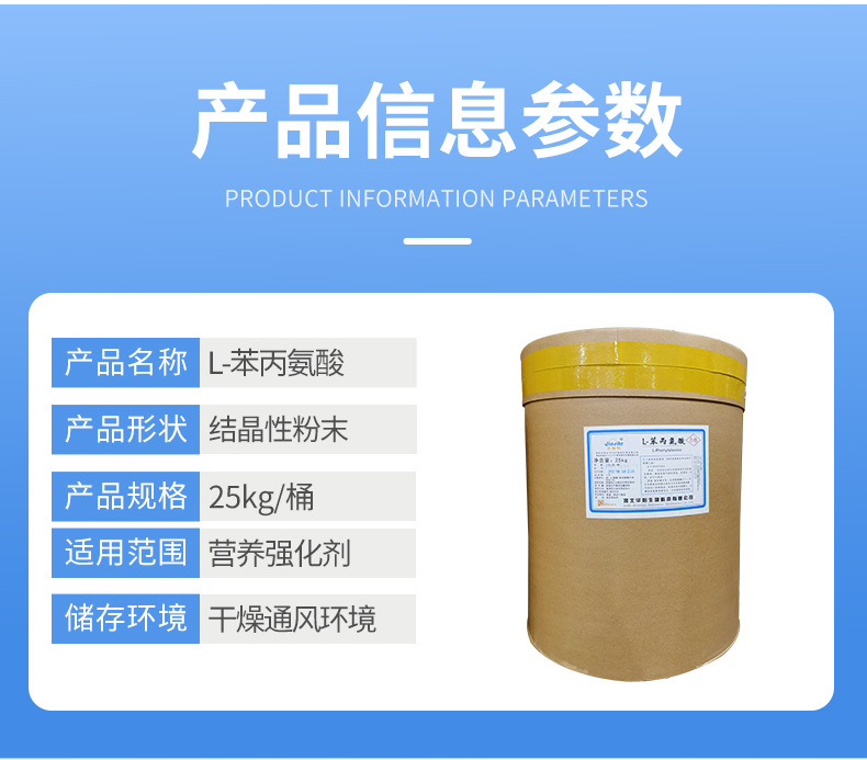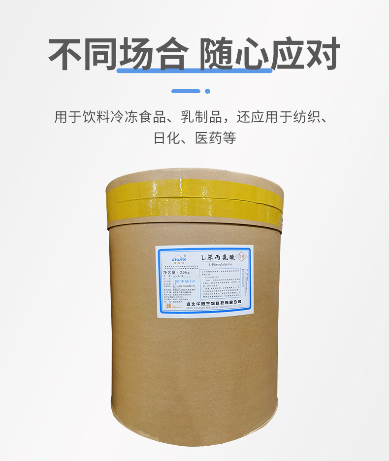 功用:L-苯丙氨酸是重要的食品添加剂-甜味剂阿斯巴甜(Aspartame)的主原料,人体*需氨基酸之一,在医药行业主要用于氨基酸输液和氨基酸类药物。L-苯丙氨酸是人体不能合成的一种*需氨基酸。食品工业上主要用作食品甜味剂阿斯巴甜的合成原料;也可作为营养增补剂。